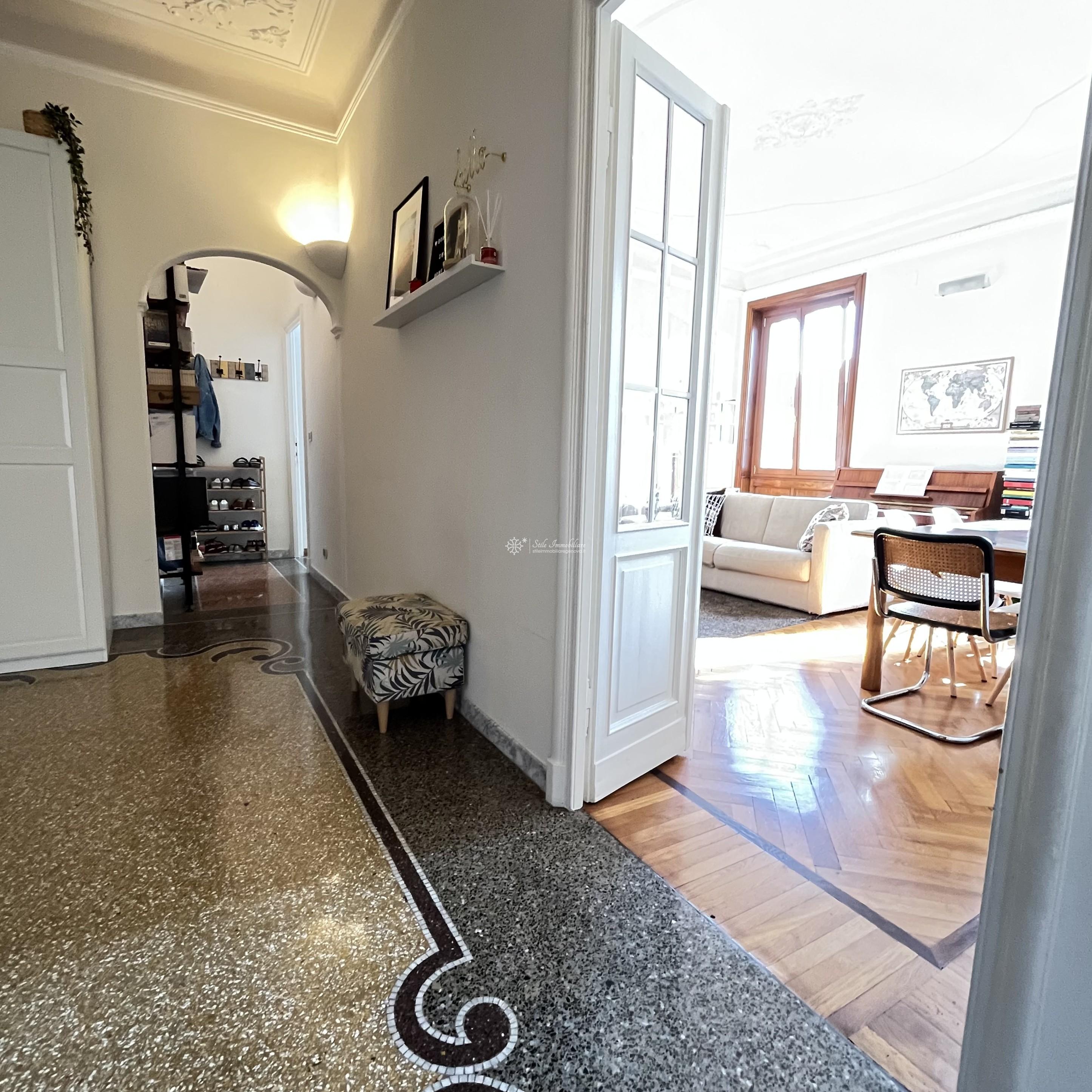 Ad. P.zza Giusti - C.SO SARDEGNA 38 - In posizione strategica, comodissimo a mezzi e servizi,PENULTIMO PIANO, eleganti e luminosi ristrutturati mq 139, suddivisi in ampio ingresso, salone doppio, cucina abitabile, 3 grandi camere, doppi servizi, studio/cabina armadio, ripostiglio, spogliatoio, balcone. Impianti a norma certificati, impianto di condizionamento, finestre in PVC doppio vetro, persiane in alluminio, porta blindata. Completa la proprieta' una porzione di terrazzo sovrastante ad uso esclusivo di circa 15 mq. Riscaldamento autonomo. € 277.000. www.stileimmobiliaregenova.it