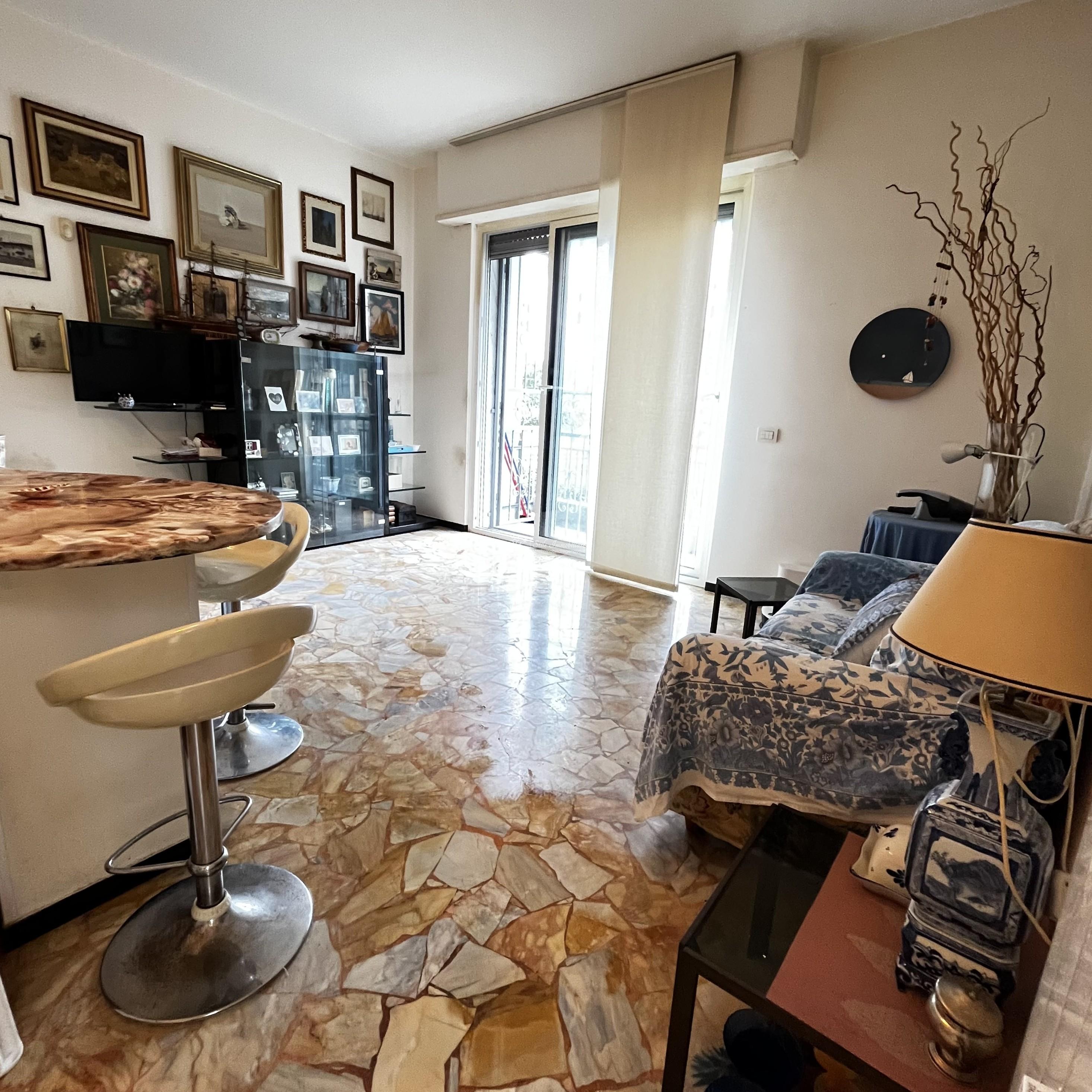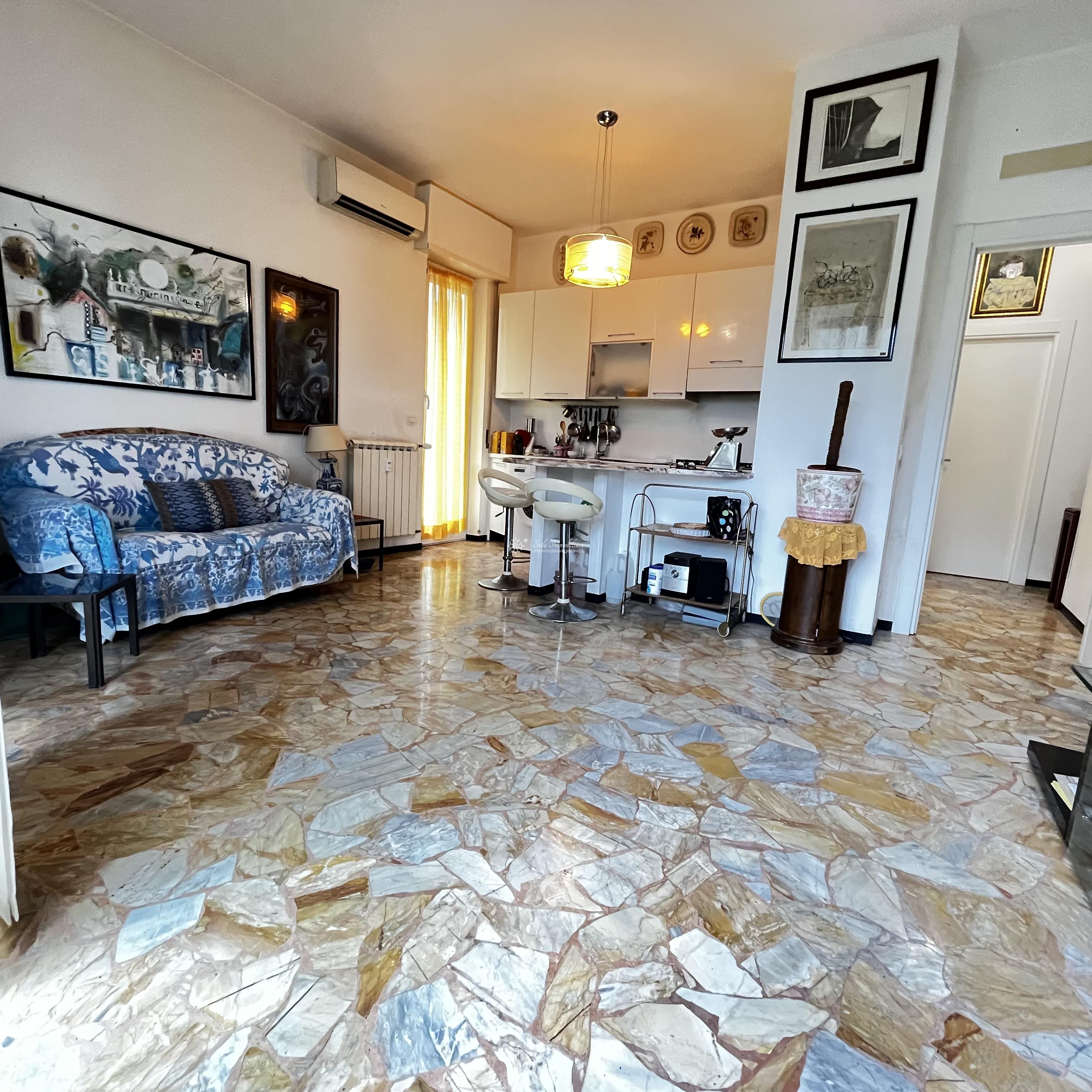 CHIAVARI - CORSO BUENOS AIRES 113 - A pochi passi dalla spiaggia, in elegante viale alberato, ristrutturati mq 65 composti da ingresso, ampia zona living/soggiorno ed angolo cottura con accesso a doppio balcone vivibile, camera matrimoniale, grande ripostiglio ad uso cabina armadio, servizio con doccia. Finestre in PVC ad anta scorrevole di ultima generazione, tapparelle elettriche, porta blindata. Impianto di condizionamento, impianto elettrico a norma. Completa la proprieta' una comoda cantina nei fondi dello stabile. € 193.000 www.stileimmobiliaregenova.it
