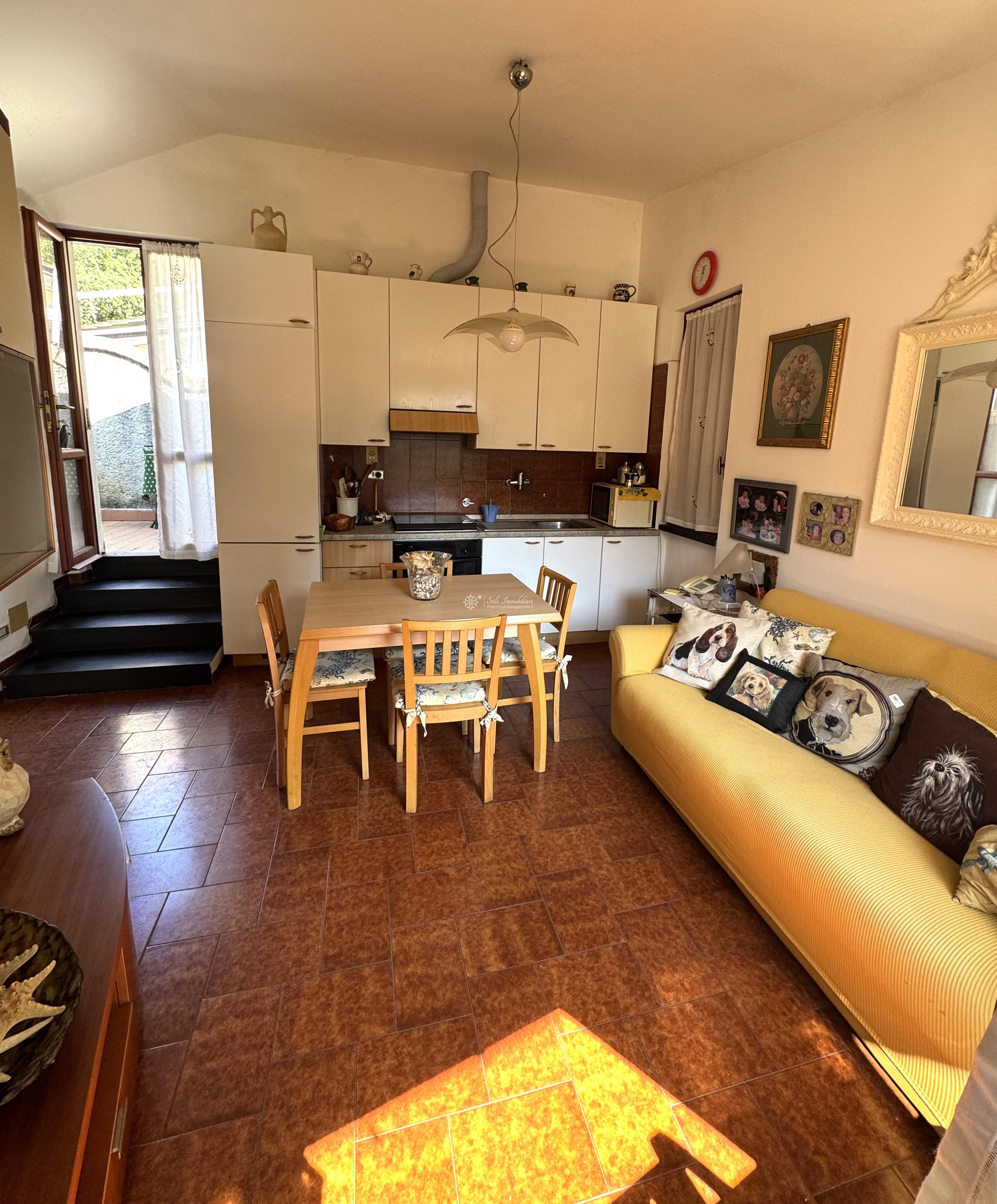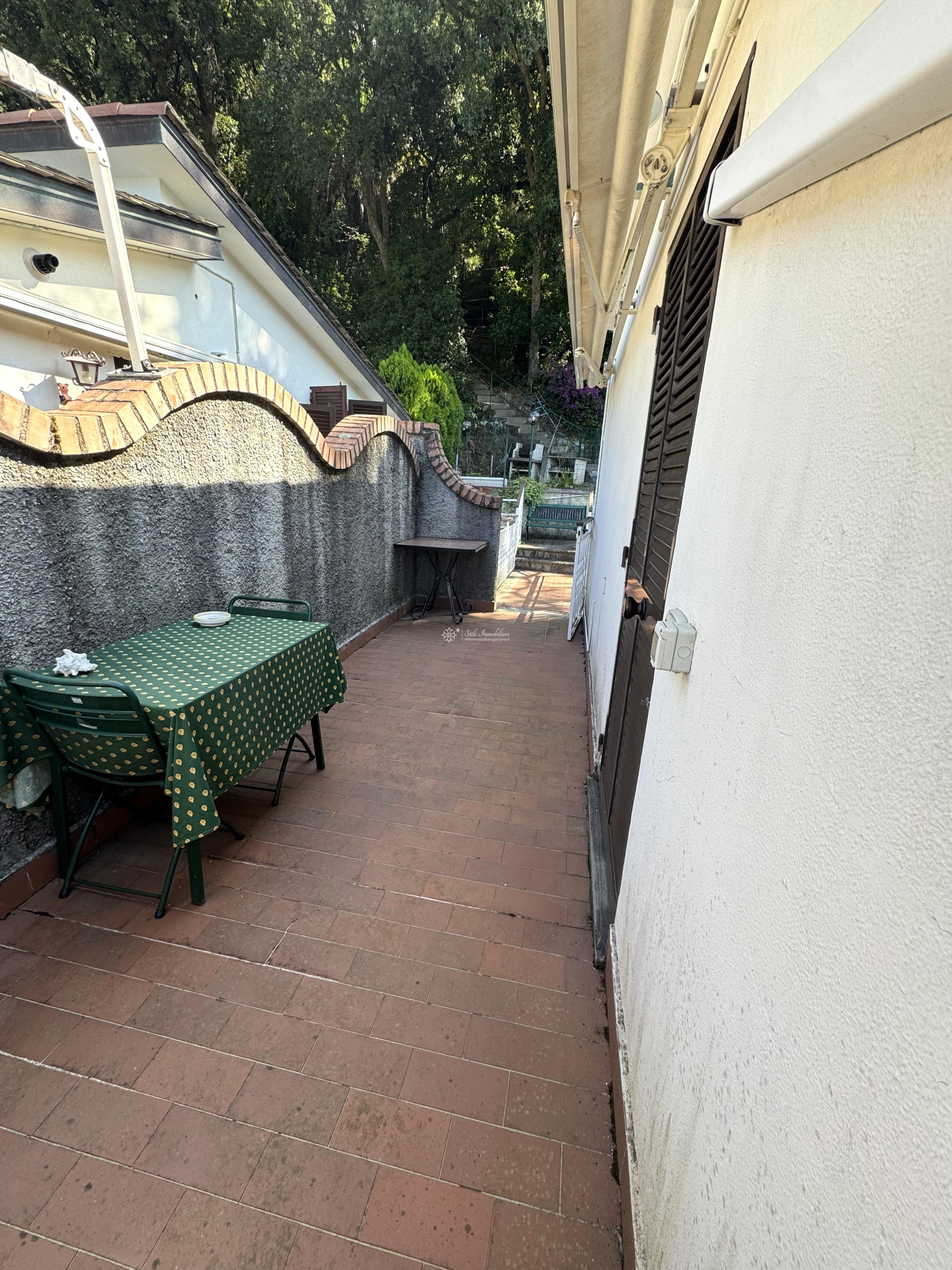 DEIVA MARINA - LOCALITA' CA MIRO' - SALITA DELLA RESISTENZA 23 - A 6 minuti dalle splendide spiagge di Deiva Marina, in piccolo edificio residenziale, immerso nel verde, luminosissimo bilocale mansardato con accesso indipendente, composto da ingresso in zona living/soggiorno, camera, servizio con doccia. Mediante breve pensilina, meraviglioso giardino di mq 45, attrezzato con punto luce, acqua, barbeque. Compresi nella vendita, 4 terreni prevalentemente pianeggianti per un totale di mq 600, dotati di acqua e luce per eventuale utilizzo orto, collegati al giardino di proprieta' tramite breve scaletta. Completa la proprieta' un comodo posto auto adiacente all'abitazione. L'immobile, in posizione defiliata dal traffico e' comodamente collegato al vicino centro paese, da linea bus nella strada sottostante. Le basse spese di amministrazione, rendono ideale l'investimento anche come punto di appoggio vicino al mare. € 109.000. www.stileimmobiliaregenova.it