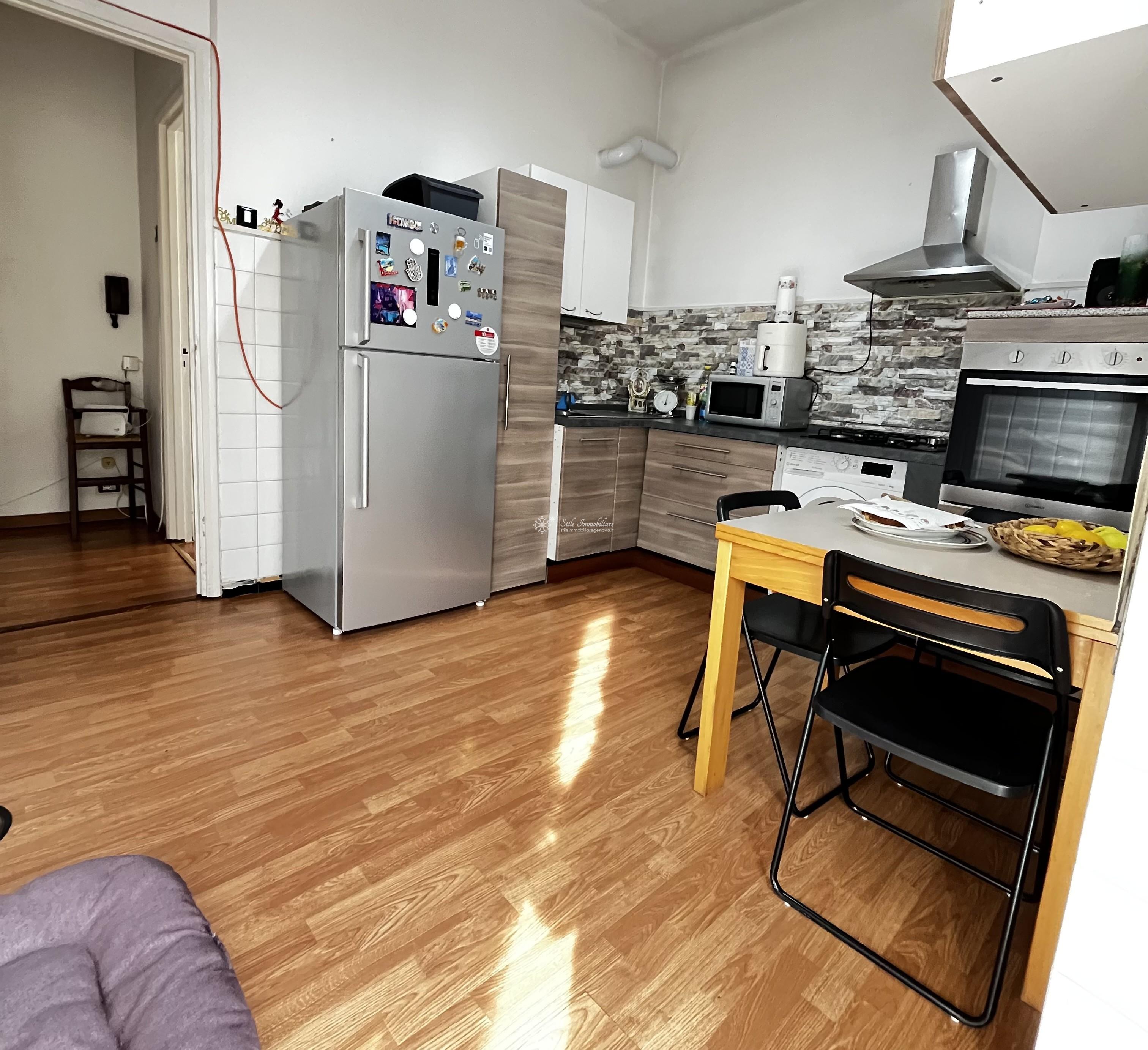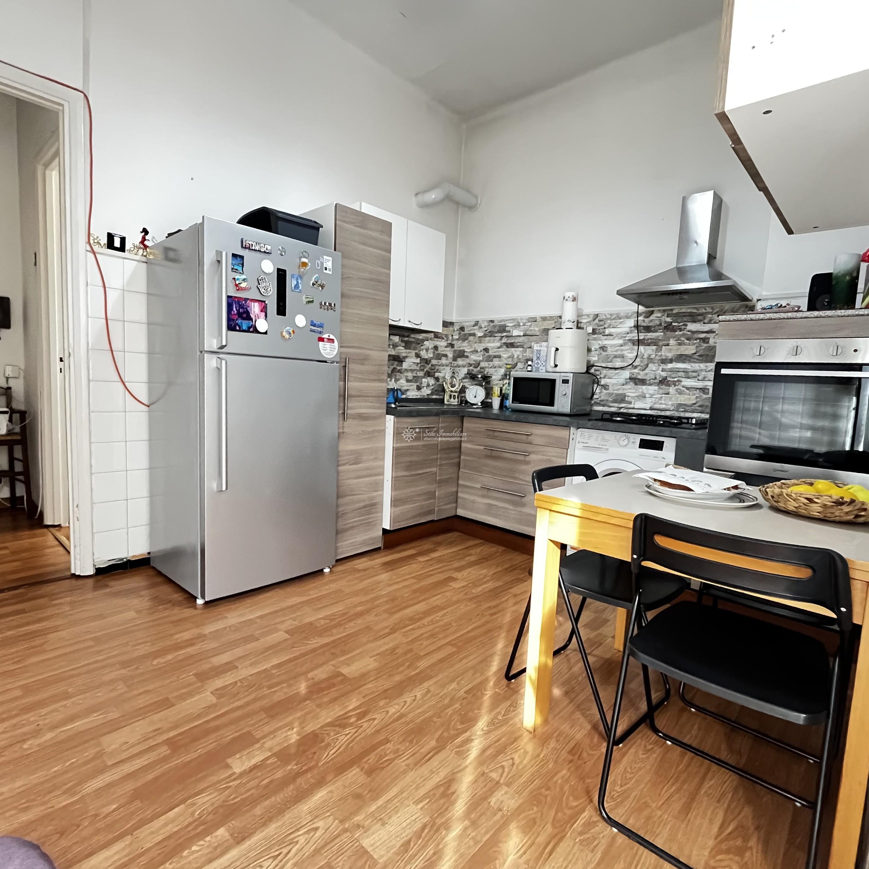 SAN FRUTTUOSO - AD. PIAZZA SOLARI - VIA G.B D'ALBERTIS 30 - In stabile appena ristrutturato totalmente nelle parti comuni, luminosi 5 ampi vani posti al terzo piano con esposizione sud/est, composti da ingresso, grande camera matrimoniale, seconda camera, cucina abitabile con accesso a soleggiata balconata perimetrale, servizio, ripostiglio. Finestre in PVC doppio vetro di ultima generazione. Data la disposizione della planimetria, e' possibile personalizzare l'immobile creando un ampia zona living/soggiorno con cucina. L'immobile e' attualmente locato con contratto transitorio in scadenza il 30 settembre 2026. Completa la proprieta' una comoda cantina nello stabile. € 117.000 www.stileimmobilairegenova.it