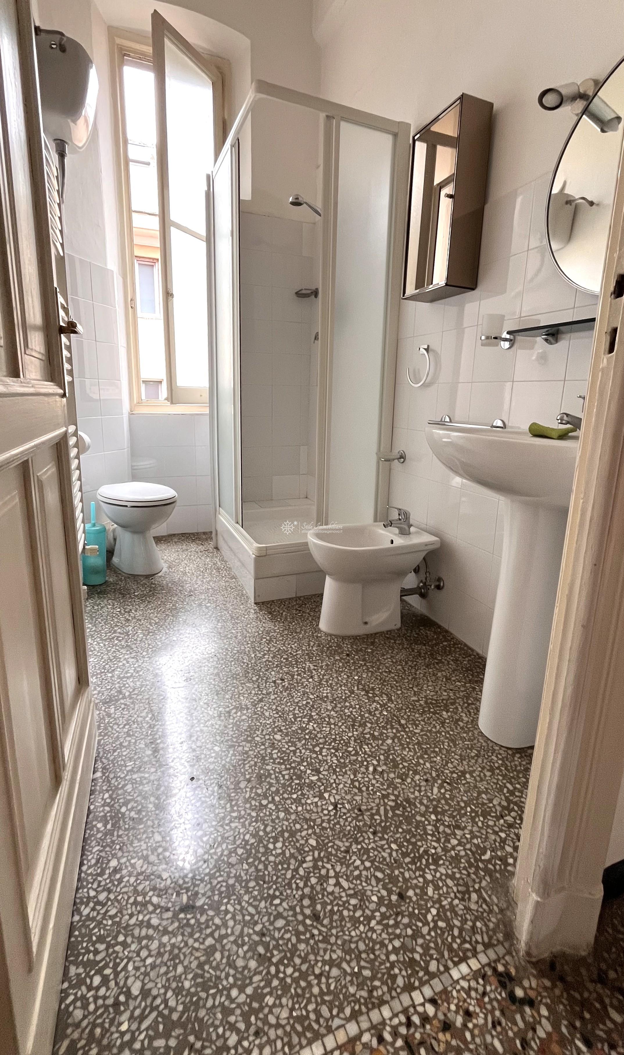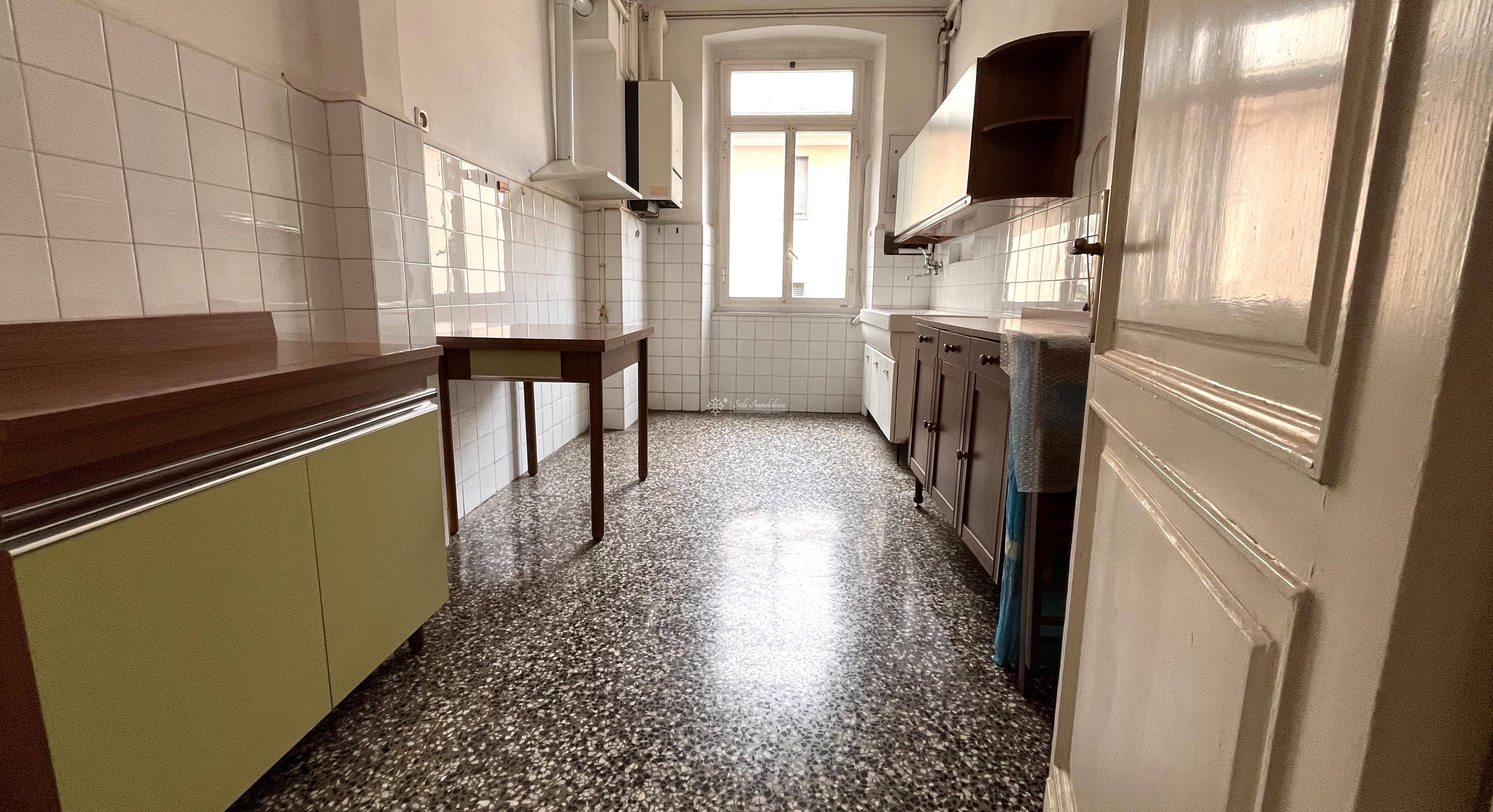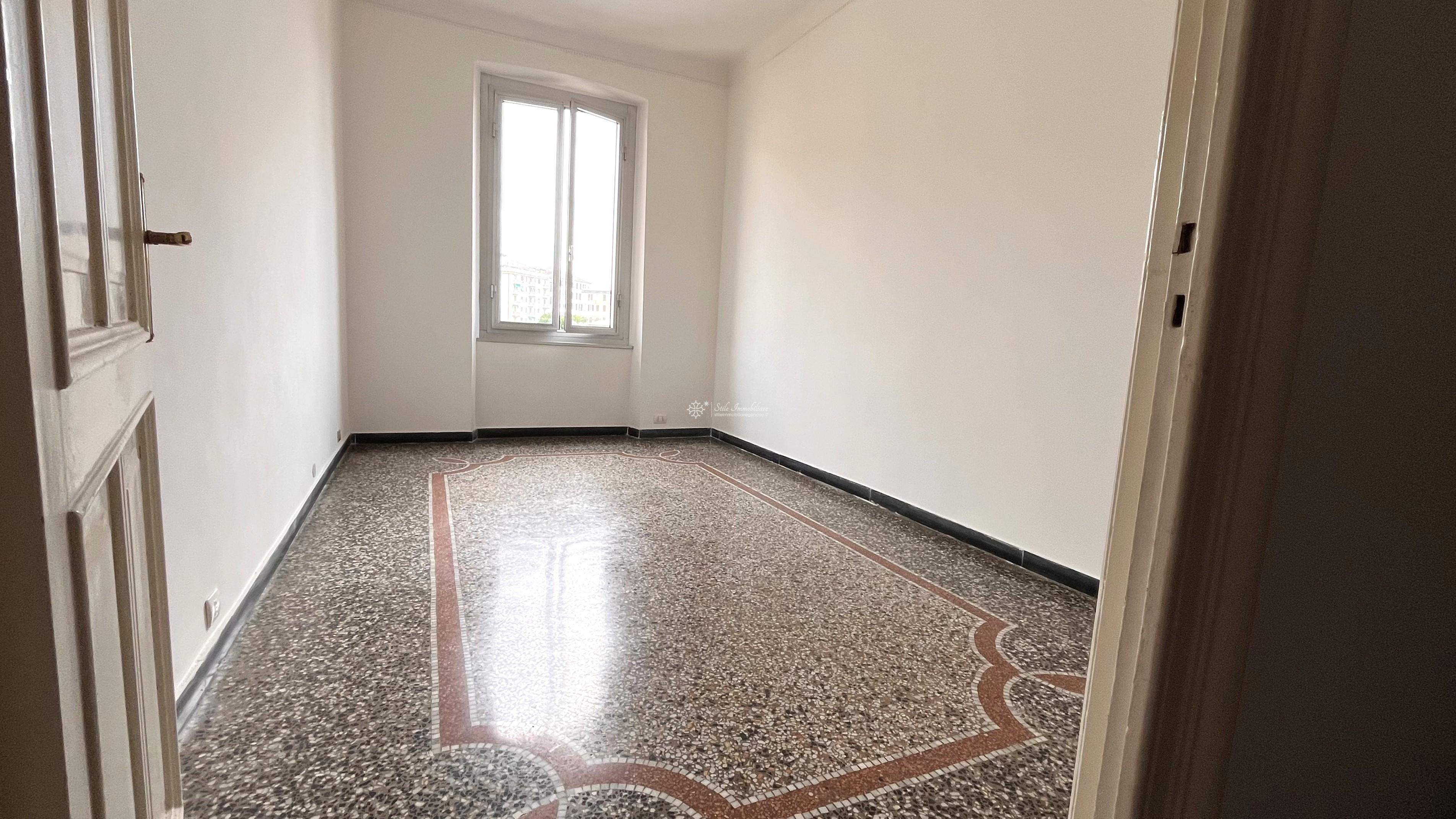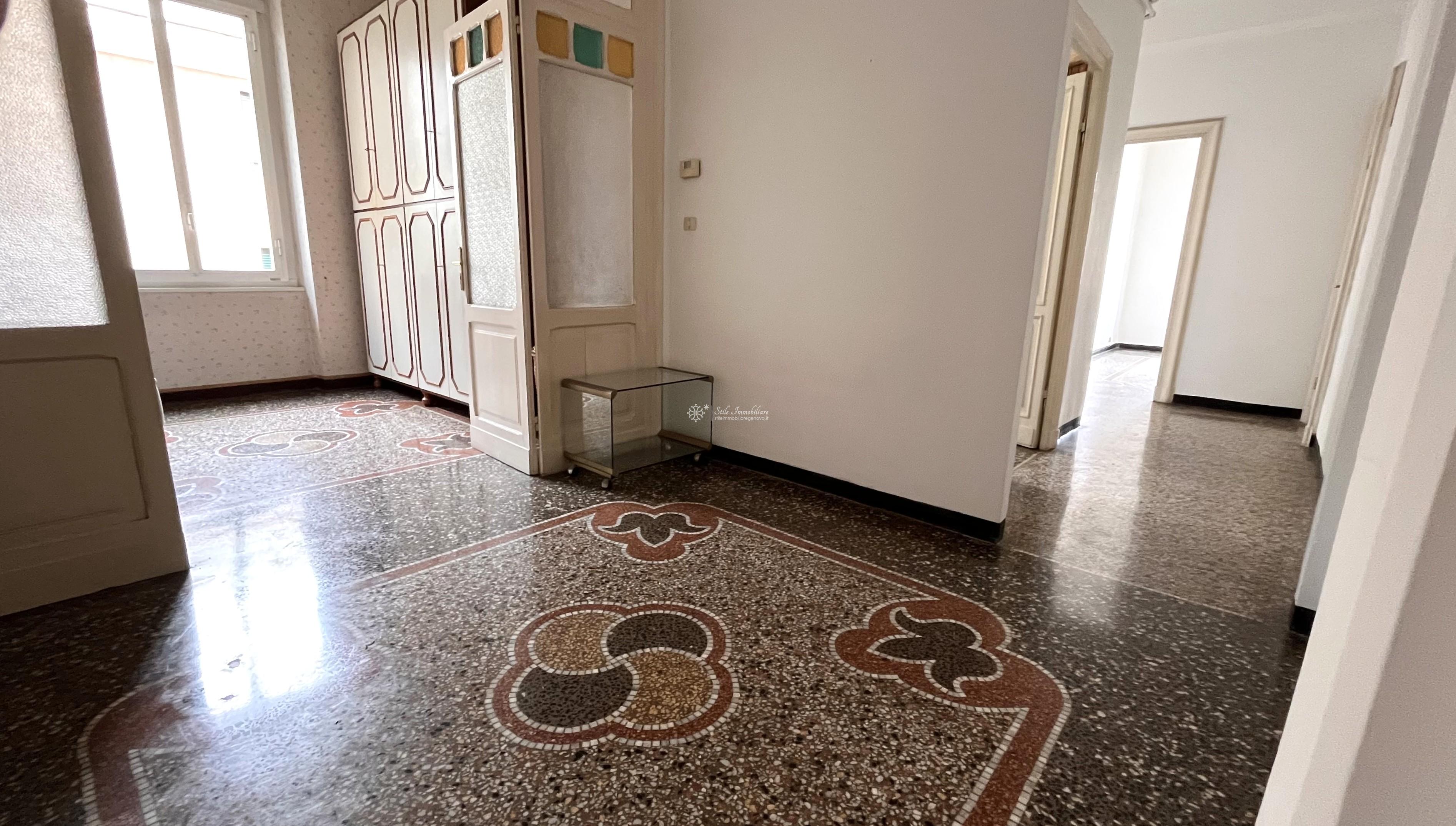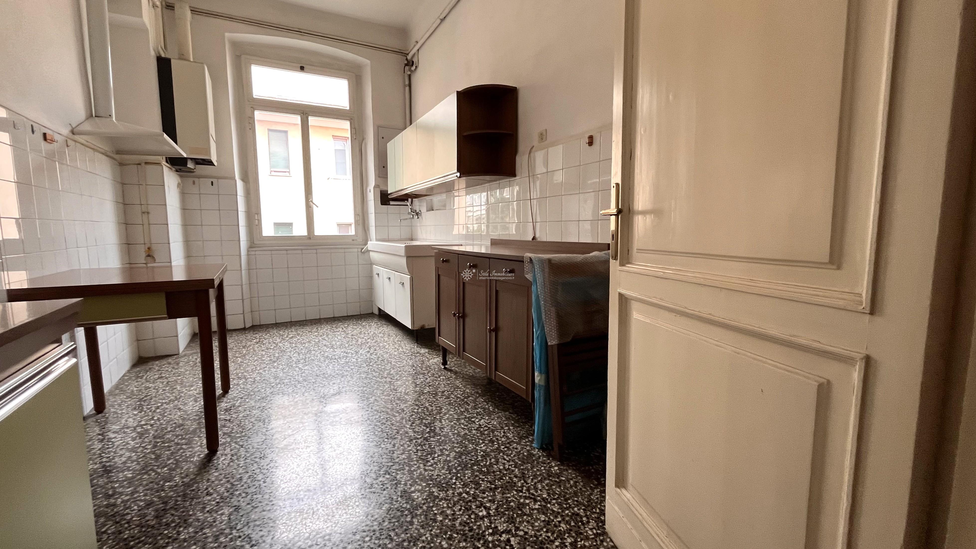 SAN FRUTTUOSO - AD. VIA G.B D'ALBERTIS / P.ZZA MARTINEZ - VIA ALBERTO E JESSIE MARIO 20 - Comodissimo a mezzi e servizi, In stabile elegante con posti auto e moto condominiali NON ASSEGNATI, piano alto, luminosi mq 90 da personalizzare, attualmente suddivisi in ampio ingresso, soggiorno, cucina abitabile, servizio, ripostiglio, due grandi camere matrimoniali di cui una con accesso a balcone da cui ammirare vista citta'. Finestre in alluminio, pavimenti in graniglia decorata. Data la disposizione della planimetria, e' possibile creare un' ampia zona living open space o eventuale terza camera. € 147.000 www.stileimmobiliaregenova.it