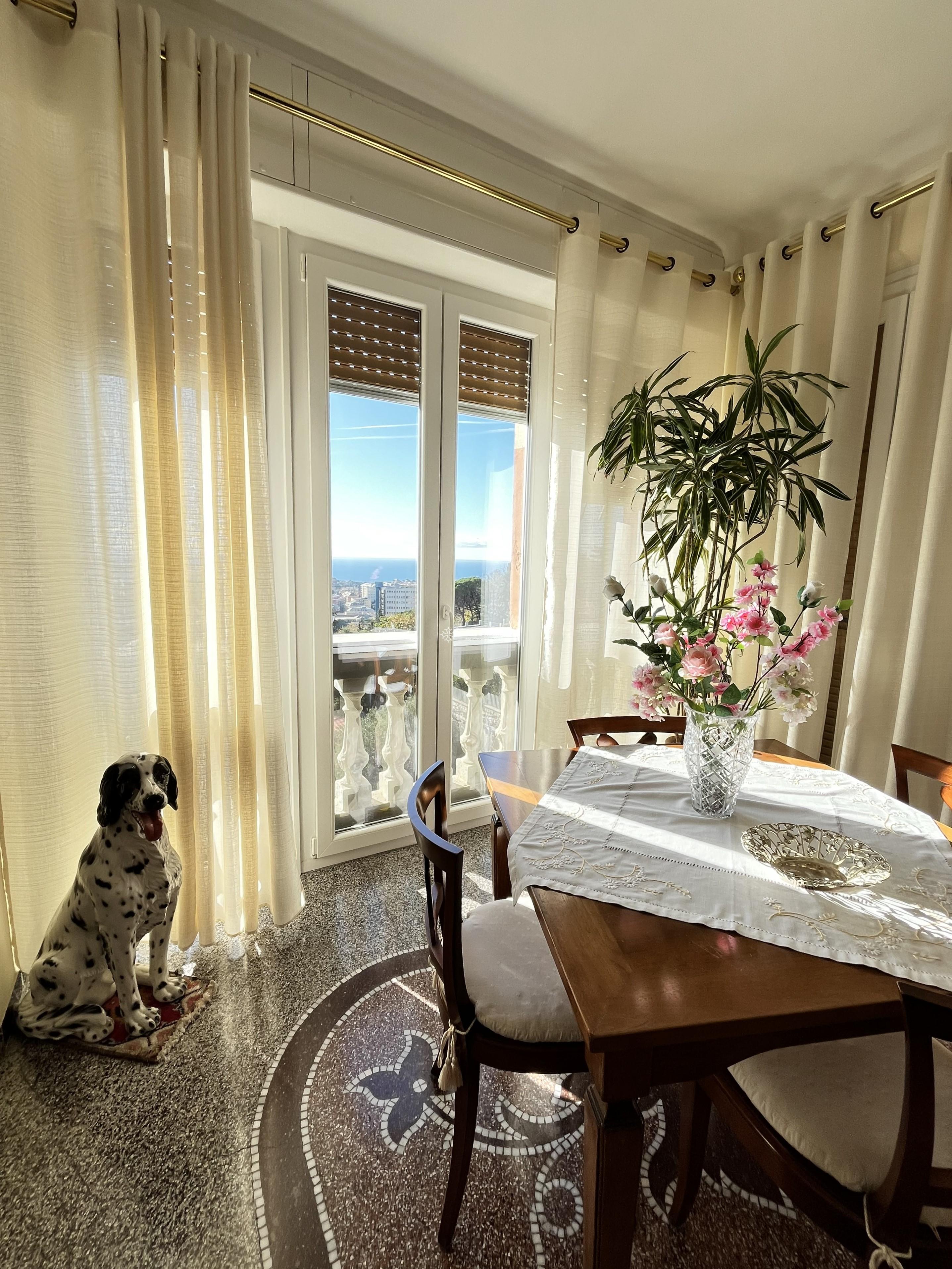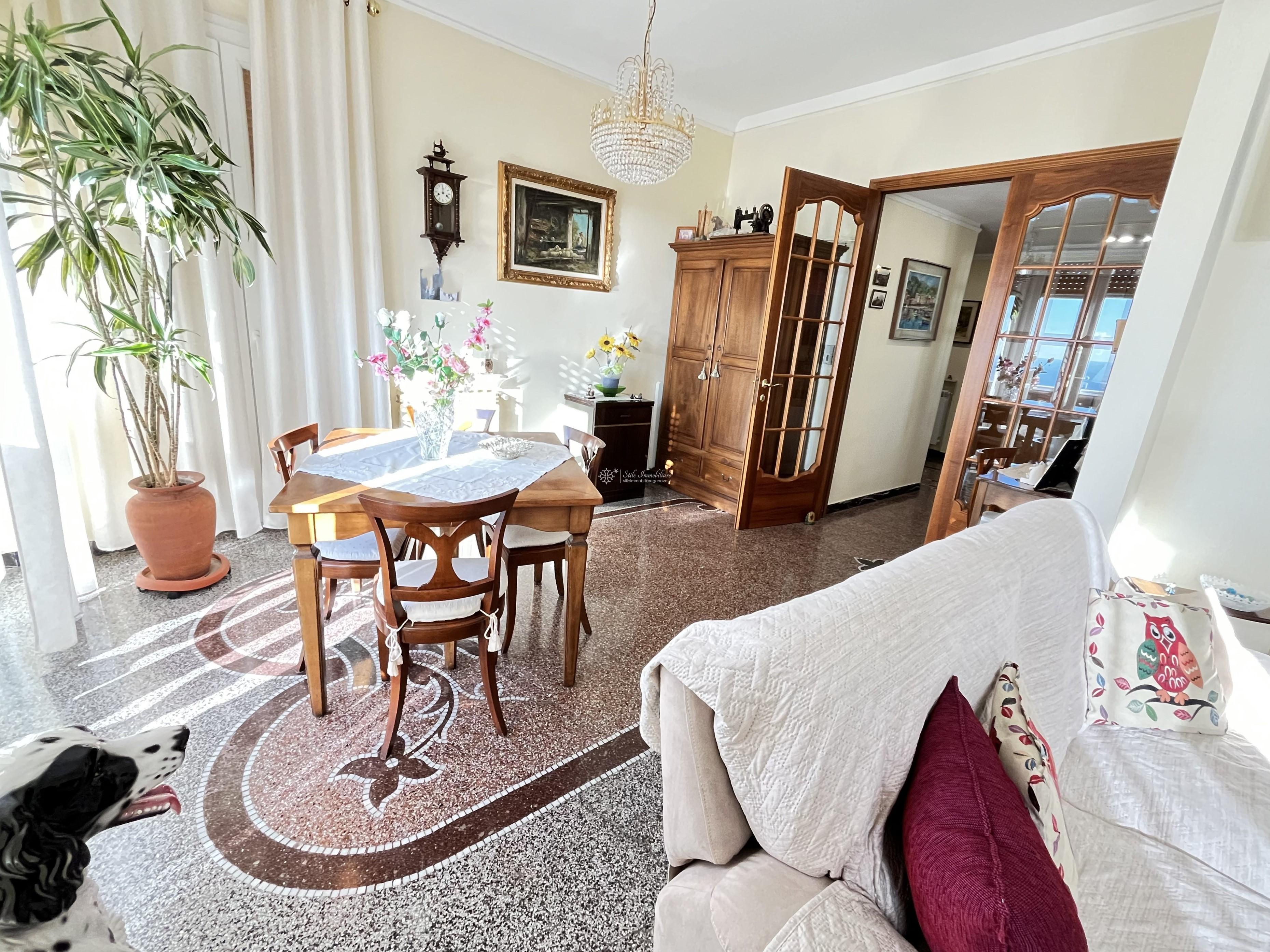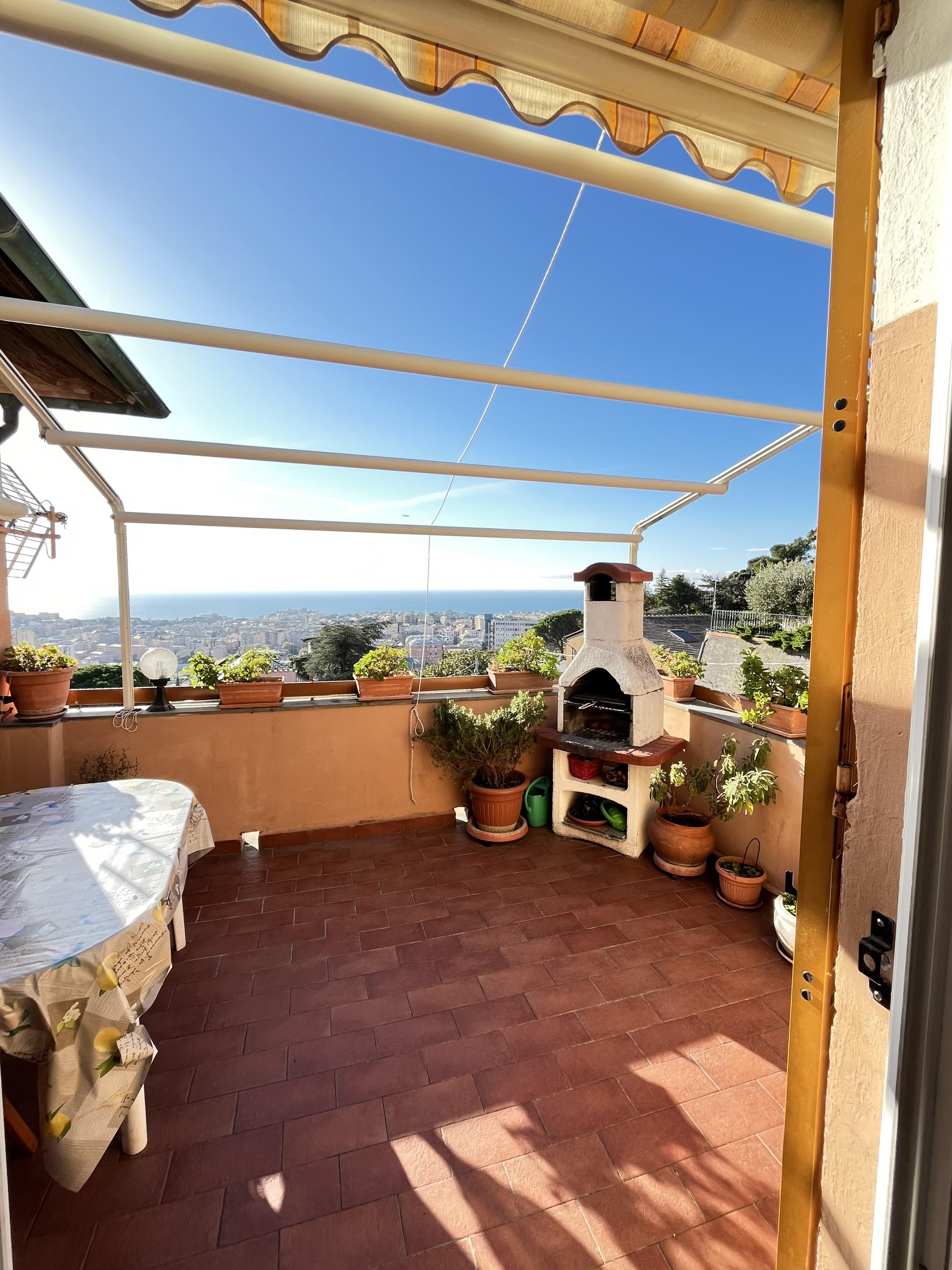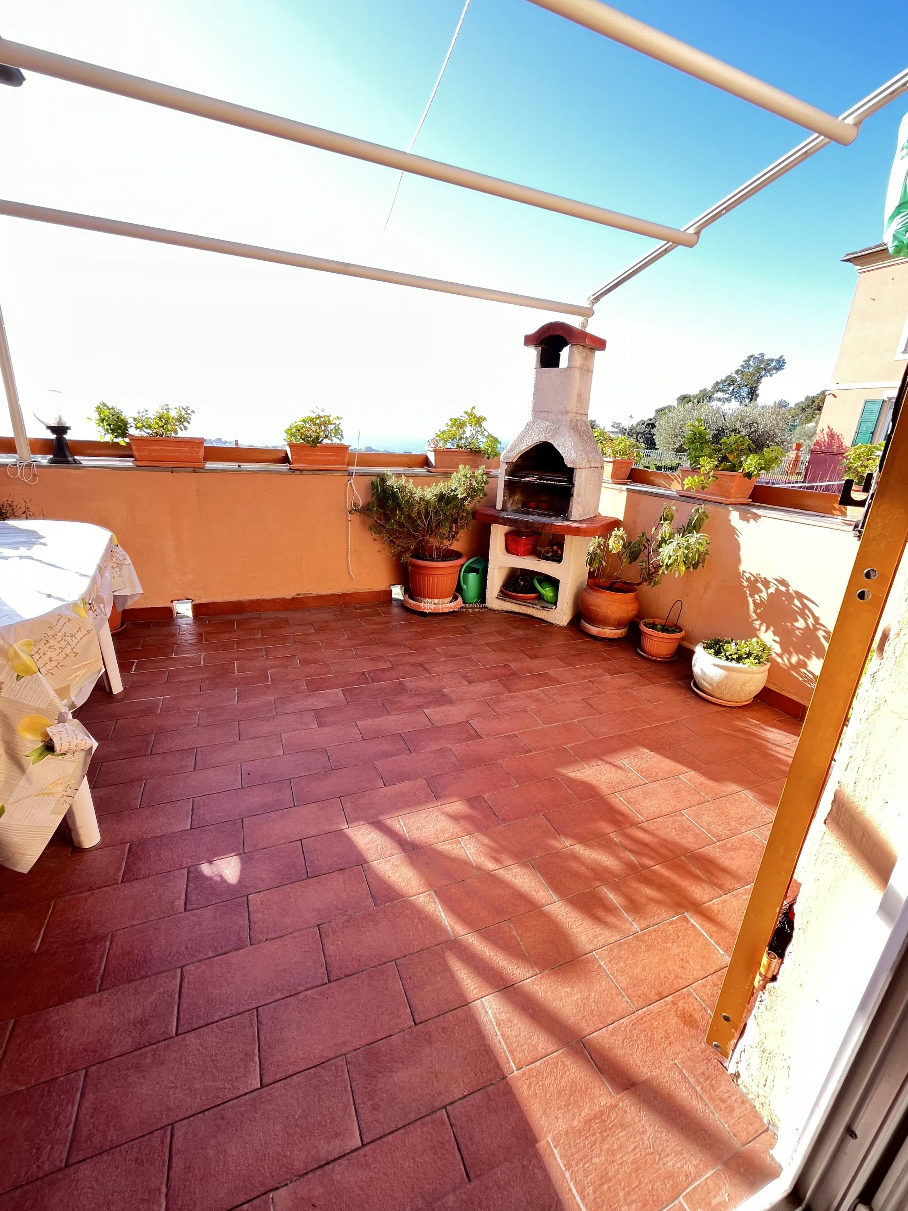 SAN MARTINO - SALITA SUPERIORE DI SANTA TECLA 29b - A pochi passi dallo storico Forte di Santa Tecla, in elegante palazzotto recentemente ristrutturato nelle parti comuni, di soli 4 unita' abitative, UNICO MERAVIGLIOSO appartamento posto al terzo ed ultimo piano, con esposizione totale a 360 gradi su Genova, mq 143 suddivisi in ingresso, salone doppio, 3 camere matrimoniali, doppi servizi, ripostiglio, cucina abitabile con accesso a favoloso terrazzo al piano che rendono l'immobile unico in zona. Impianto elettrico sfilabile, finestre in PVC bianco di ultima generazione, porta blindata. Completano la proprieta' una grande cantina con finestra, giardino perimetrale con accesso a terrazzo con pergolato adibito a posti auto. € 323.000 www.stileimmobiliaregenova.it