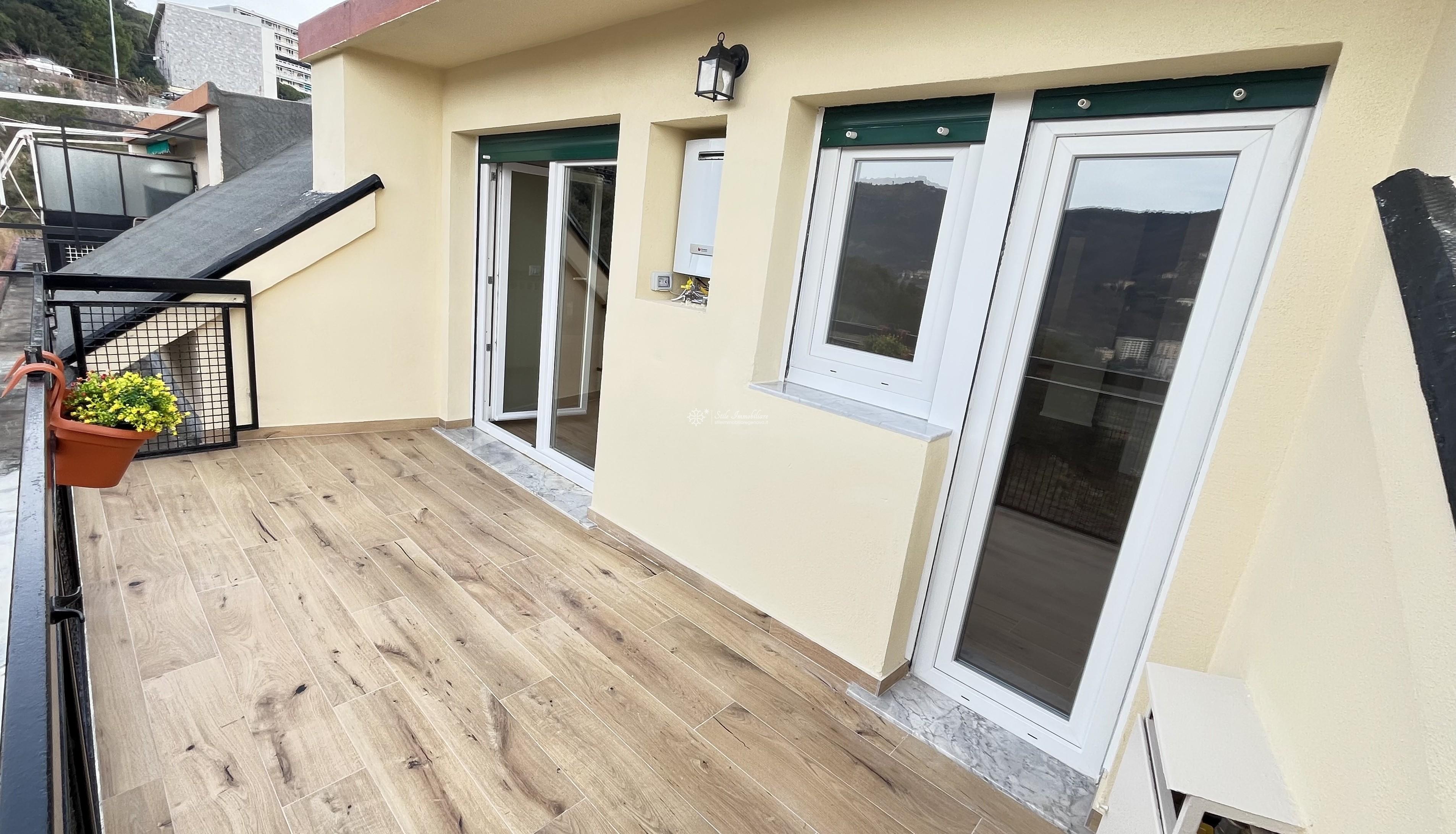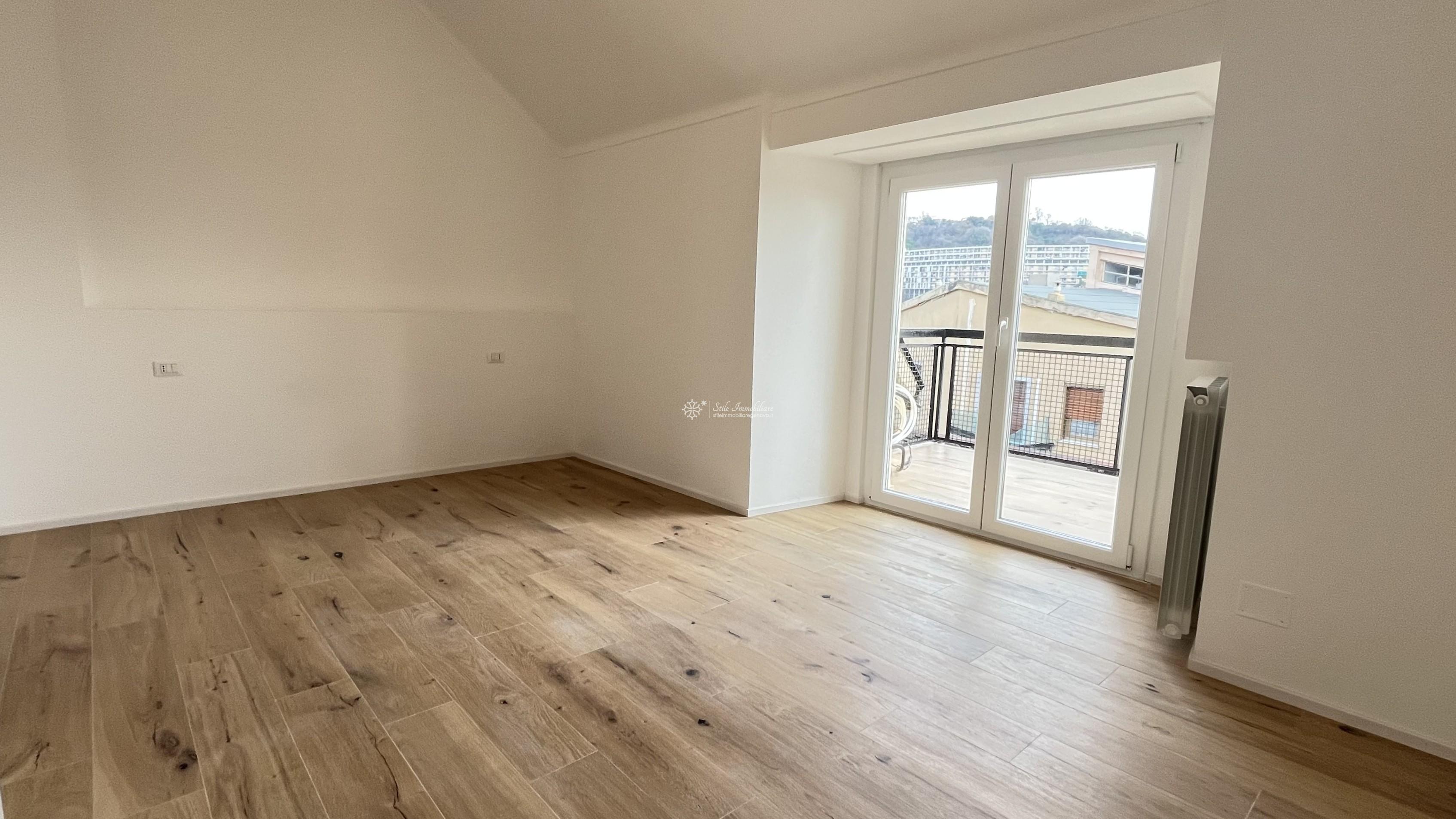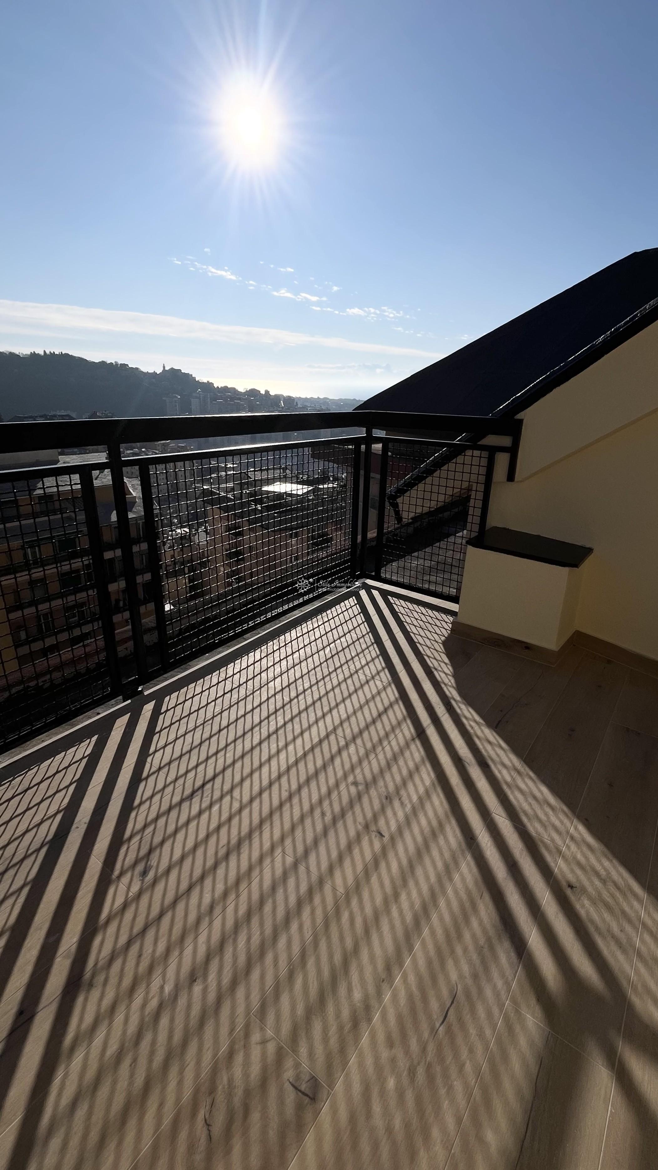 MARASSI - VIA ENRICO H. GIGLIOLI 104 - ATTICO - In contesto privato e residenziale, con posti auto condominiali non assegnati ma sufficienti al fabbisogno dei condomini, vendesi causa trasferimento, splendido attico finemente ristrutturato mai abitato composto da ingresso, ampia zona living/soggiorno/cucina arredata con accesso a terrazzo al piano vivibile da cui ammirare spettacolare vista mare/citta', camera matrimoniale con accesso a secondo terrazzo al piano vivibile, camera singola dotata di ripostiglio/sottotetto ad uso "cabina armadio", altro ampio ripostiglio/sottotetto ad uso lavanderia, servizio con doccia. Finestre in PVC di ultima generazione, tapparelle elettriche, predisposizione impianto di condizionamento, porta blindata. Impianti a norma certificati. € 197.000 www.stileimmobiliaregenova.it