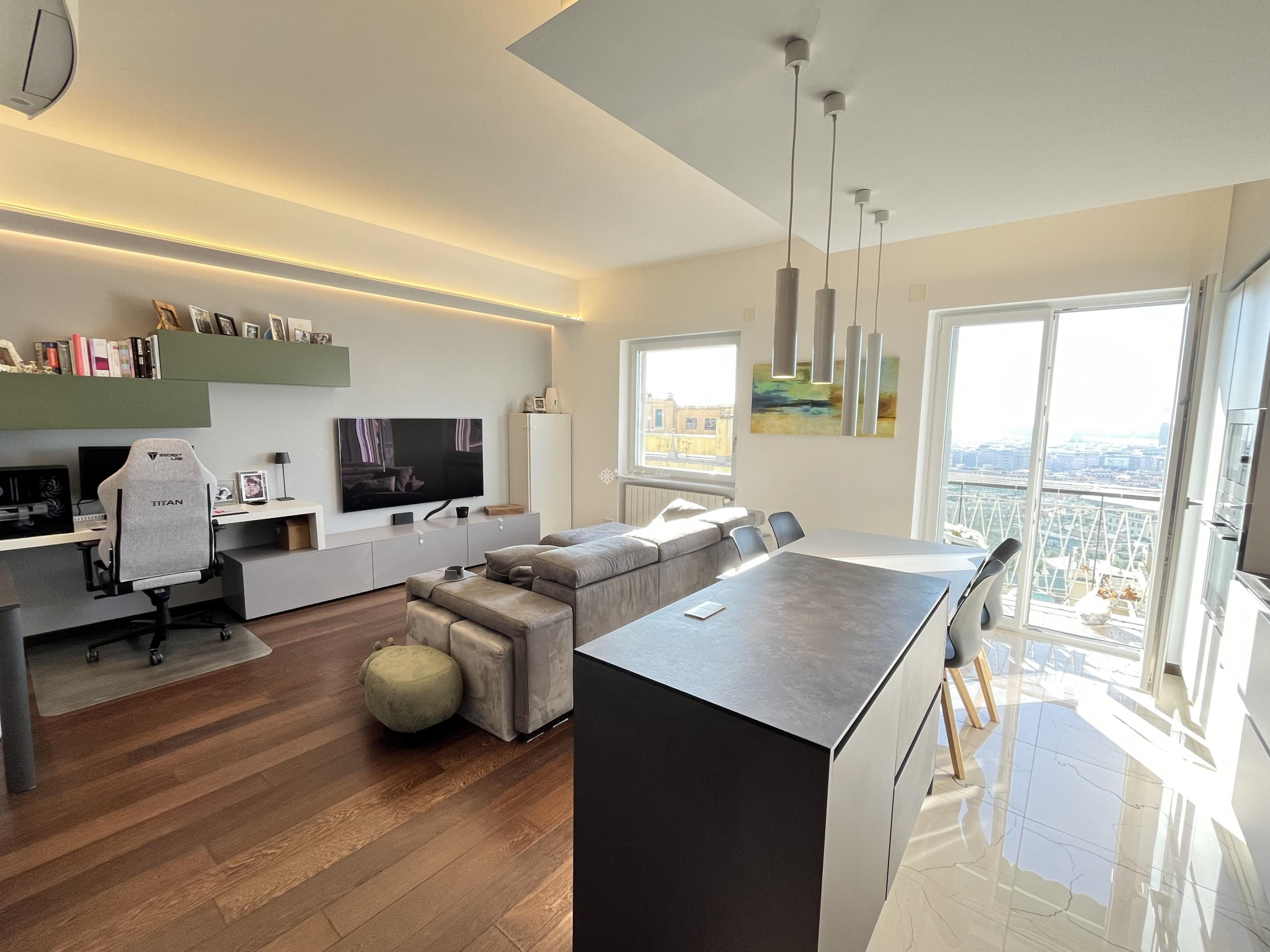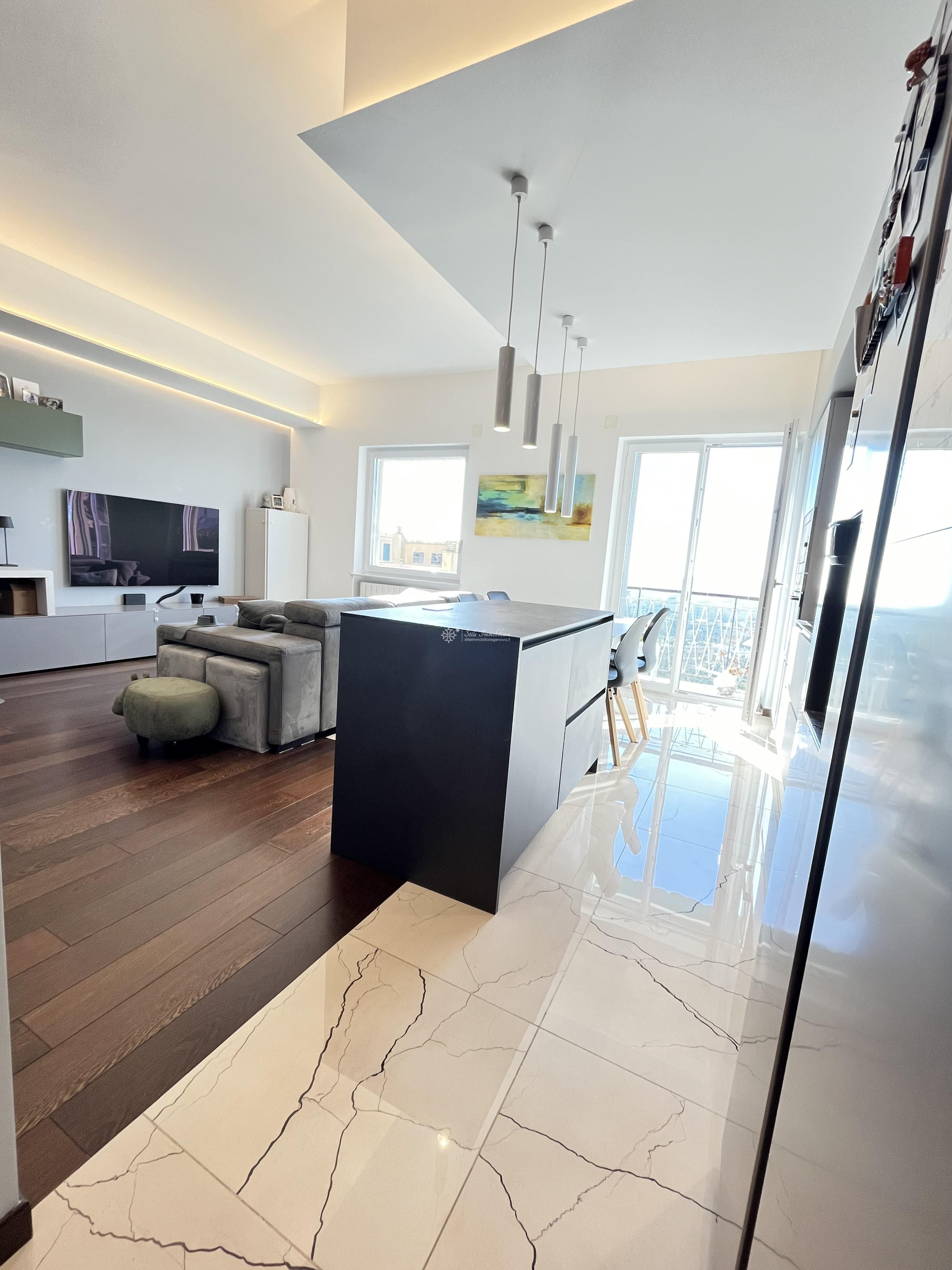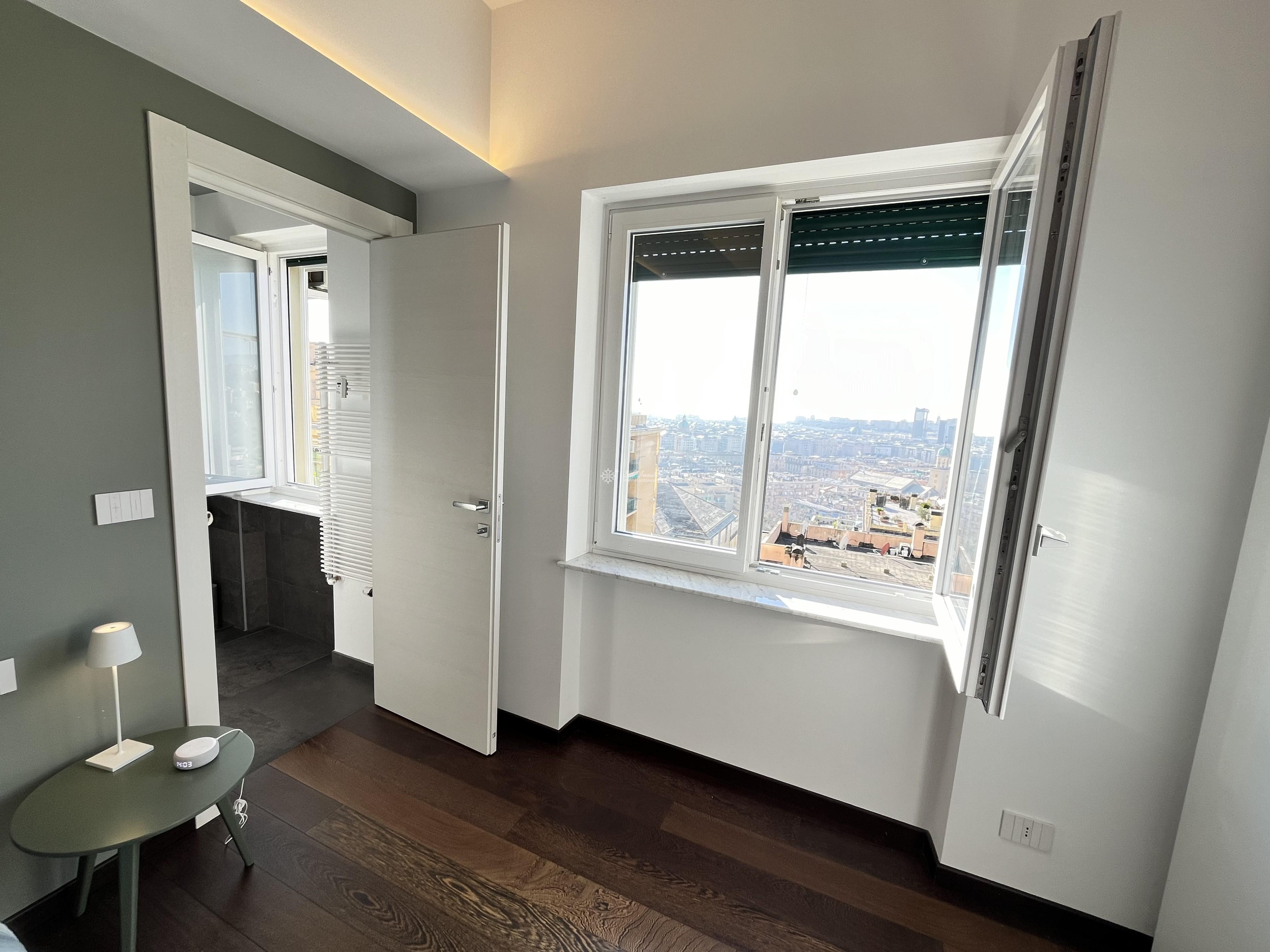 SAN FRUTTUOSO - VIA F. DONAVER 20 - Nella parte comoda della via, UNICI, con strepitosa vista mare/citta', 7 ampi vani recentemente ristrutturati da architetto con materiali di altissima qualita',posti al piano terra con esposizione terzo piano suddivisi in ingresso con cabina spogliatoio, ampia zona living/soggiorno con cucina a vista e balcone, camera singola, camera matrimoniale con accesso a sala da bagno dotata di finestra, secondo servizio con doccia, zona lavanderia, ripostiglio. Pavimenti in parquet, gres, finestre Oknoplas doppio vetro, tapparelle elettriche con cassettoni a scomparsa. Porte laccate "FERRERO", porta blindata. Impianti a norma certificati, impianto di condizionamento, domotica. Riscaldamento centralizzato, basse spese di amministrazione. Evenutale posto auto/moto scoperto in locazione adiacente al palazzo. € 257.000 www.stileimmobiliaregenova.it