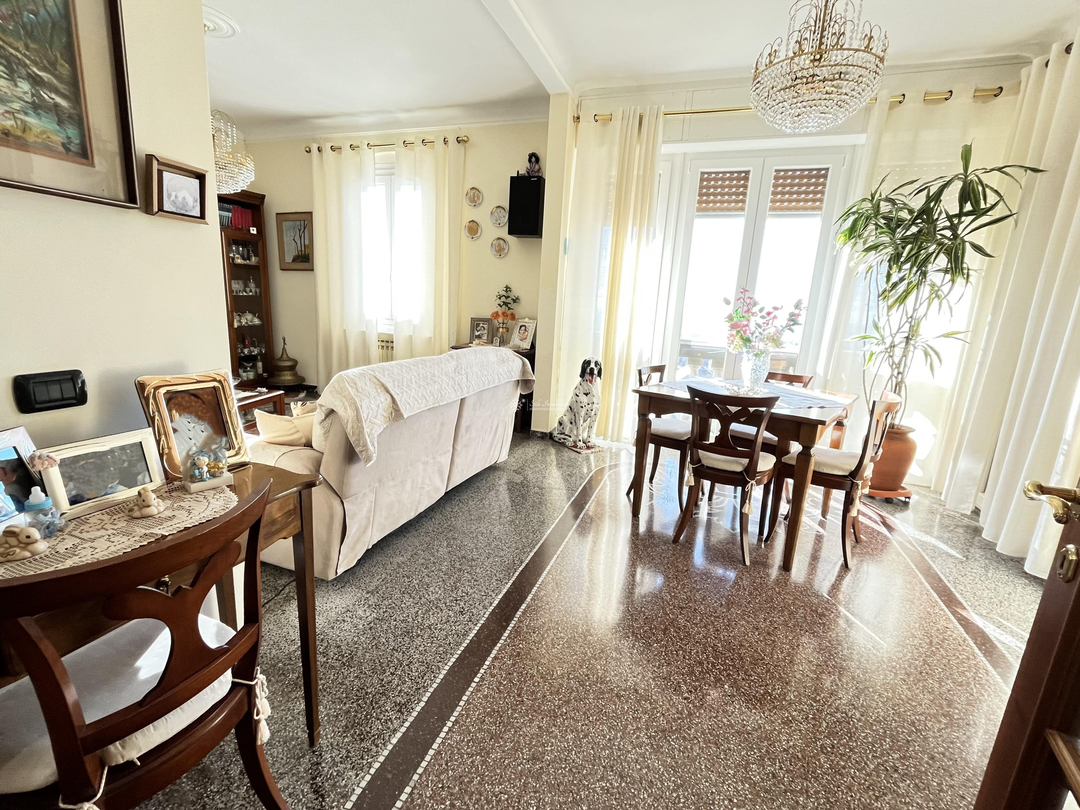 SAN MARTINO - SALITA SUPERIORE DI SANTA TECLA 29b - A pochi passi dallo storico Forte di Santa Tecla, in elegante palazzotto recentemente ristrutturato nelle parti comuni, di soli 4 unita' abitative, UNICO MERAVIGLIOSO appartamento posto al terzo ed ultimo piano, con esposizione totale a 360 gradi su Genova, mq 143 suddivisi in ingresso, salone doppio, 3 camere matrimoniali, doppi servizi, ripostiglio, cucina abitabile con accesso a favoloso terrazzo al piano che rendono l'immobile unico in zona. Impianto elettrico sfilabile, finestre in PVC bianco di ultima generazione, porta blindata. Completano la proprieta' una grande cantina con finestra, giardino perimetrale con accesso a terrazzo con pergolato adibito a posti auto. € 323.000 www.stileimmobiliaregenova.it