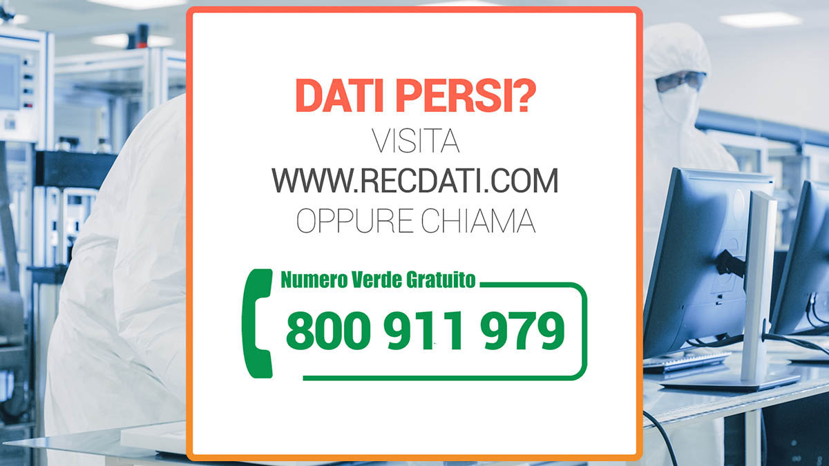 Hai perso i tuoi dati e hai necessità di recuperarli? Grazie ai nostri partner locali in tutto il territorio italiano, possiamo intervenire praticamente ovunque. Indipendentemente dal tipo di dispositivo, gravità della situazione oppure livello di urgenza, i nostri tecnici sono altamente qualificati per intervenire in qualsiasi scenario possibile. Puoi richiedere subito un preventivo gratuito visitando il sito web dedicato al recupero dati oppure chiamare il numero verde dedicato: 800.911.979 per parlare subito con il nostro centro di recupero files.